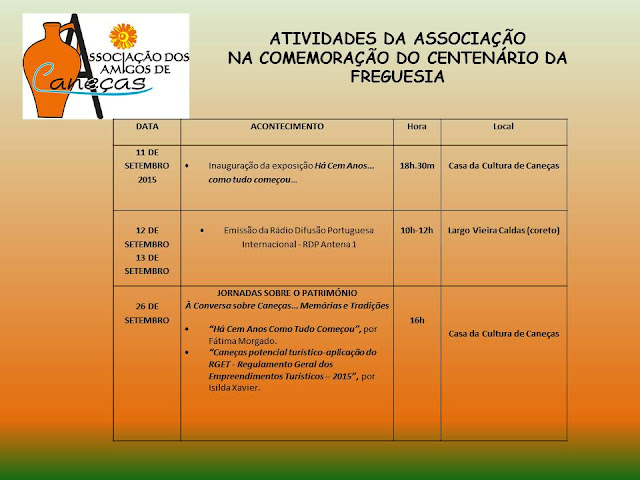 ATIVIDADES REALIZADAS E A REALIZAR PELA ASSOCIAÇÃO INTEGRADAS NO CENTENÁRIO DA FREGUESIA