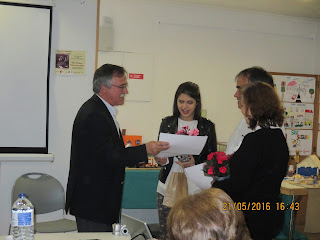 Sr. Armindo Fernandes entrega aos oradores convidados certificados de participação e de reconhecimento.